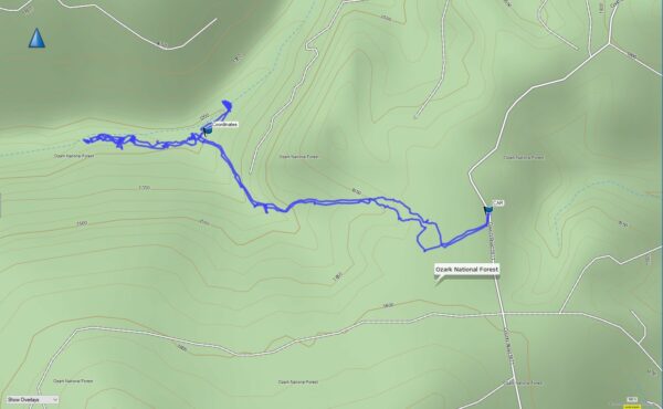 This product is a digital GPS file that contains the coordinates and route information for the Bear Creek Canyon hiking trail in Arkansas.