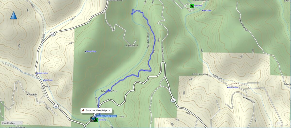 This product is a digital GPS file that contains the coordinates and route information for the Ponca to Steel Creek Trail in Arkansas.